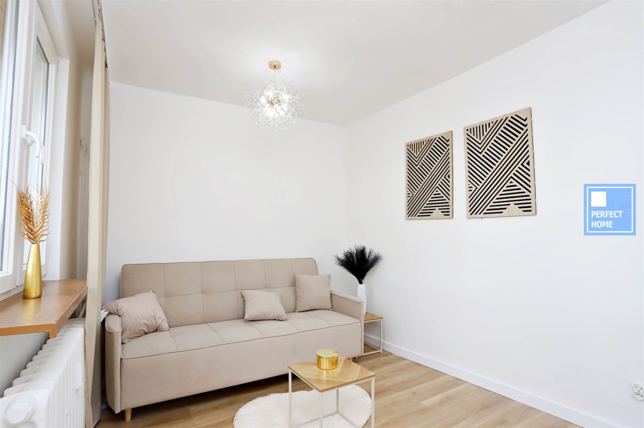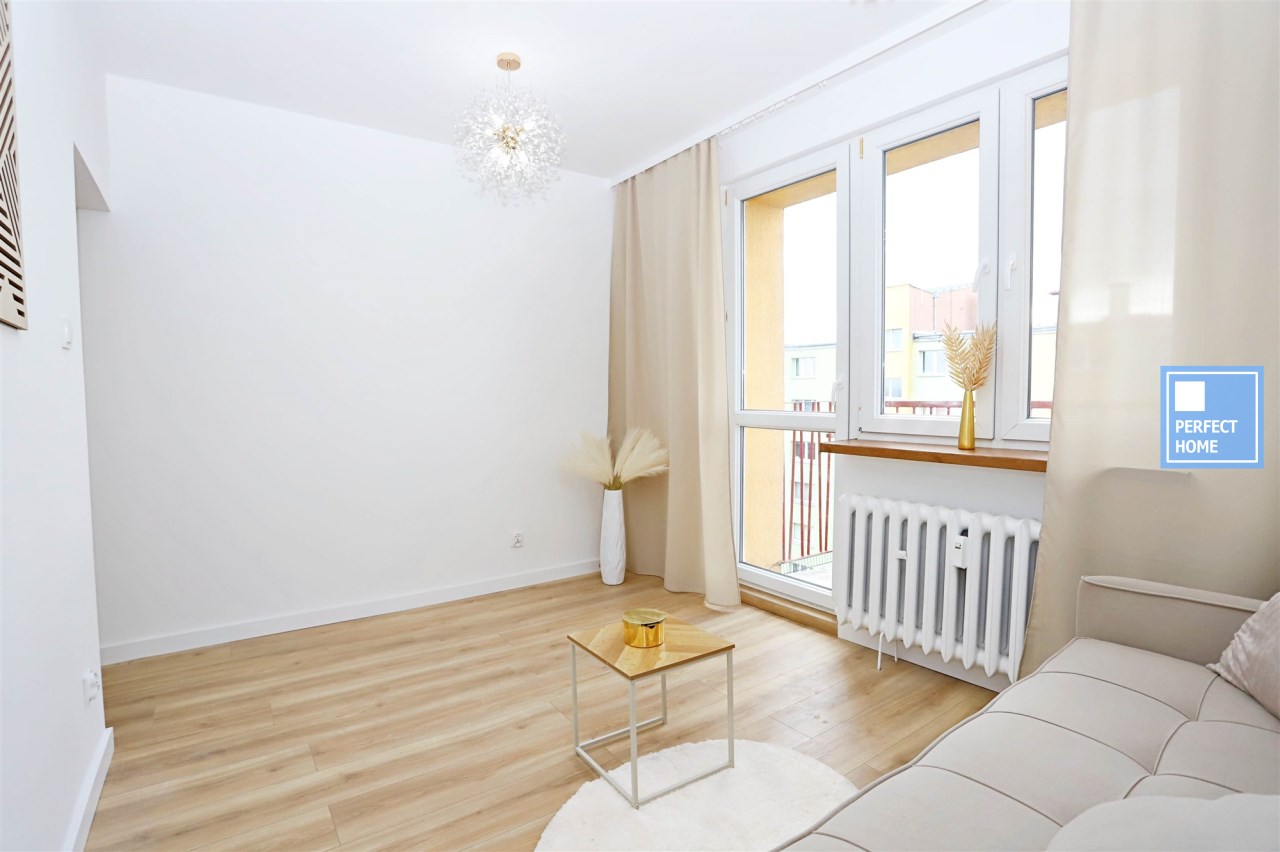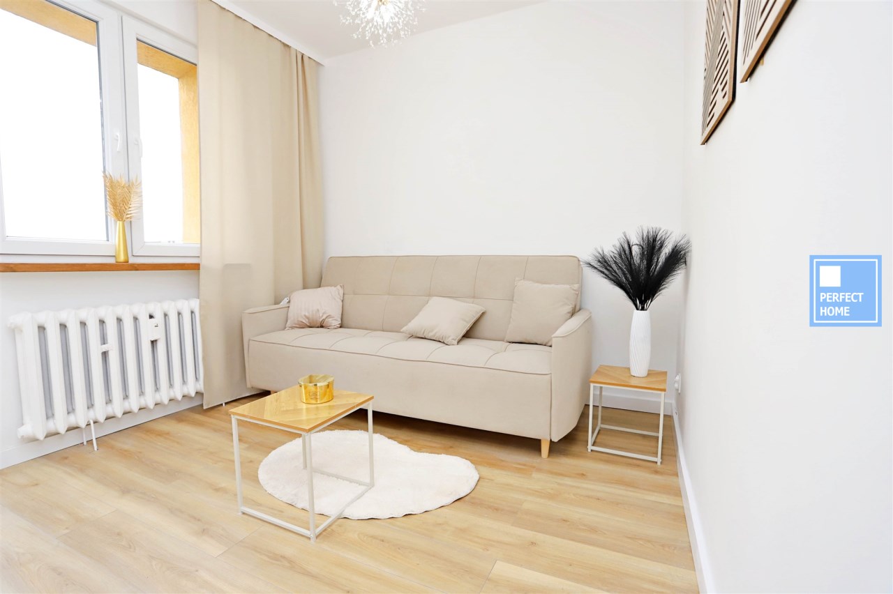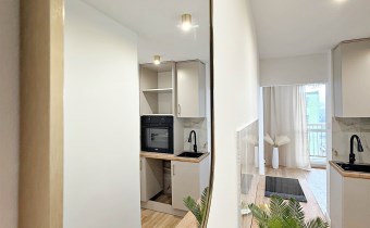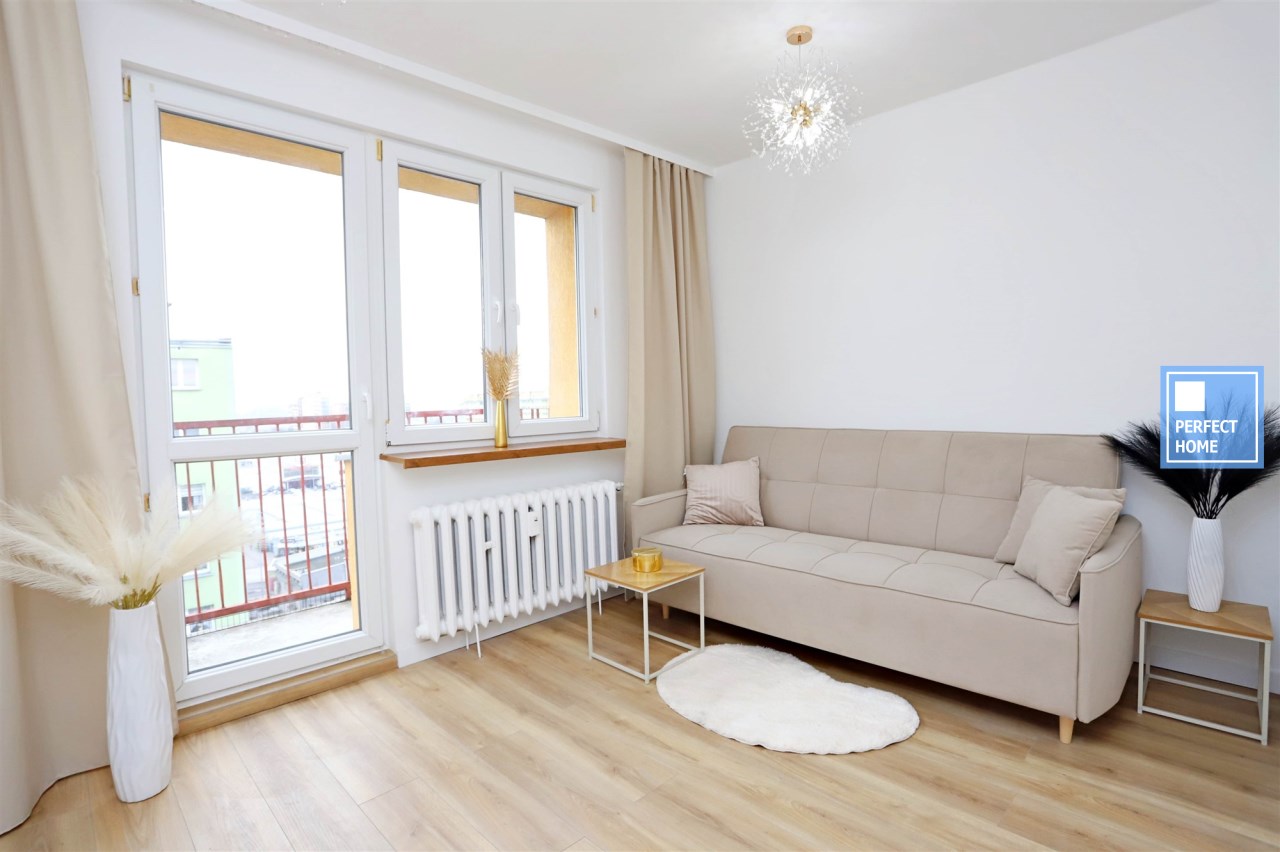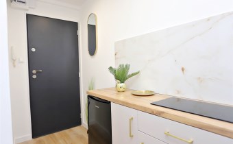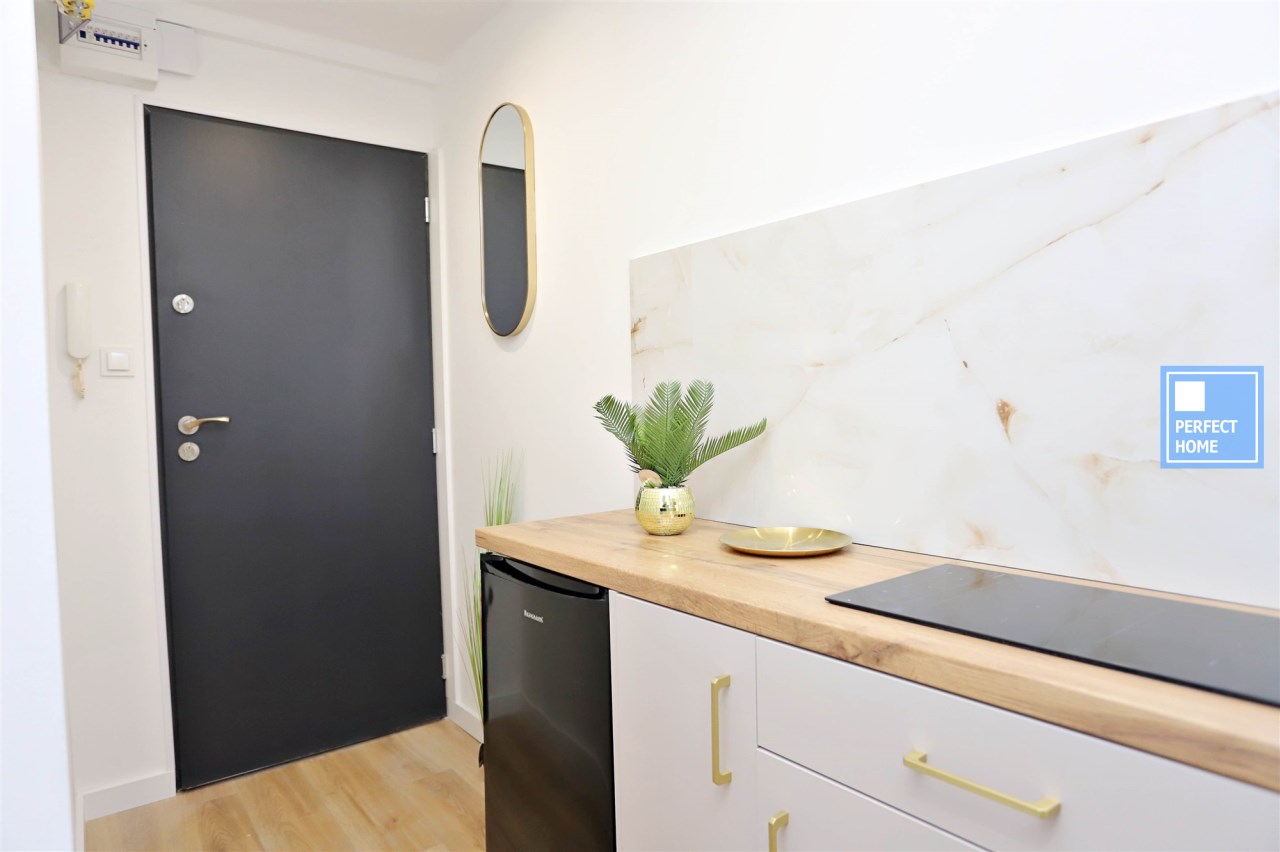 Niewątpliwym atutem oferty jest wysoki standard wykończenia oraz funkcjonalne zagospodarowanie przestrzeni mimo kompaktowego metrażu. Kuchnia została wykonana na zamówienie w modnym kaszmirowym kolorze ze złotymi akcentami i wyposażona w markową płytę indukcyjną, piekarnik, lodówkę oraz zlewozmywak, z przygotowanym miejscem w zabudowie pod zmywarkę. Łazienka jest w pełni wyposażona i wykończona w nowoczesnym stylu. Dodatkowym atutem mieszkania jest przynależny balkon. Lokal położony jest w centralnej części Piaskowej Góry — w bezpośrednim sąsiedztwie sklepów, punktów usługowych oraz komunikacji miejskiej.