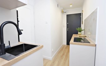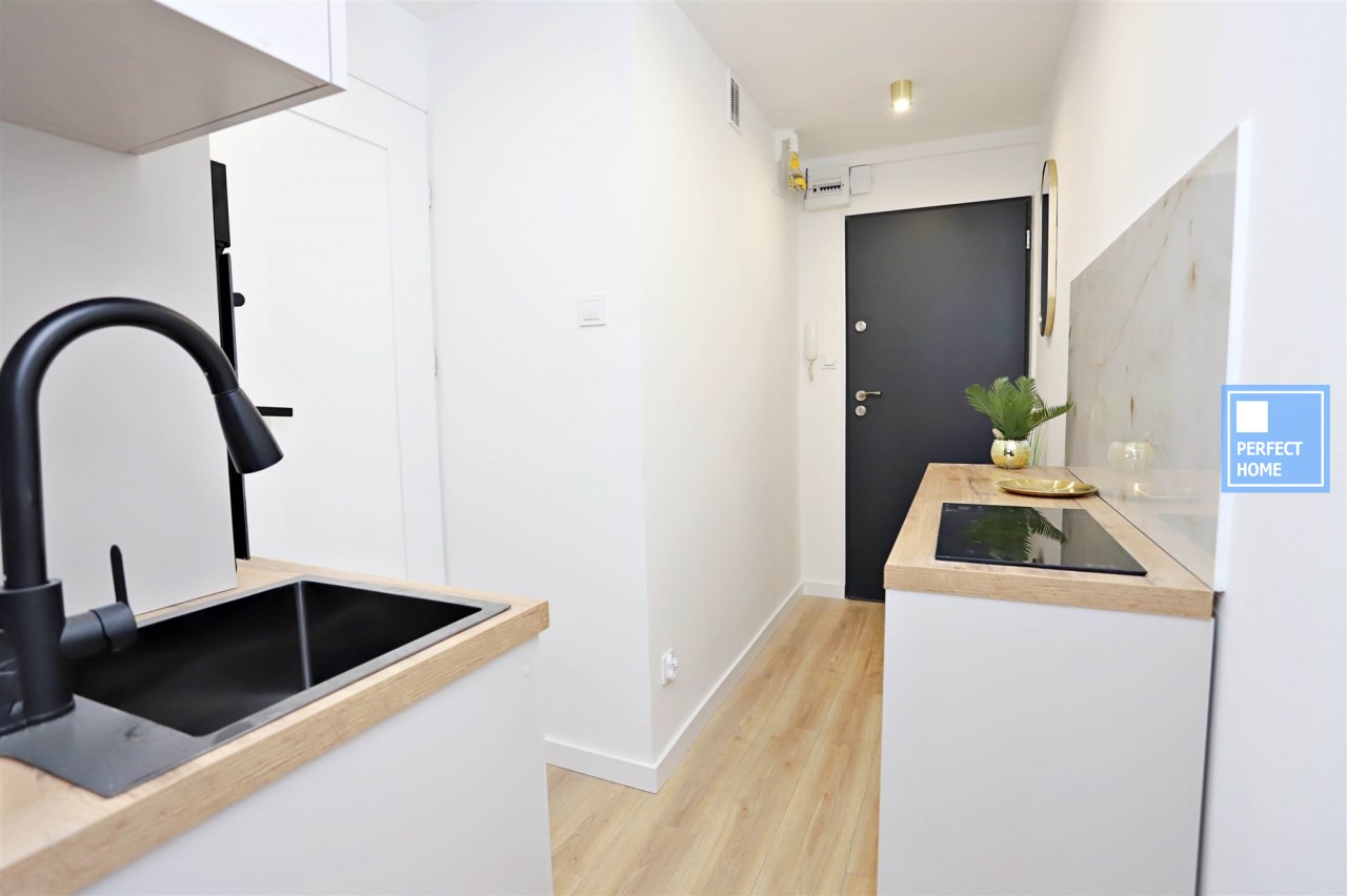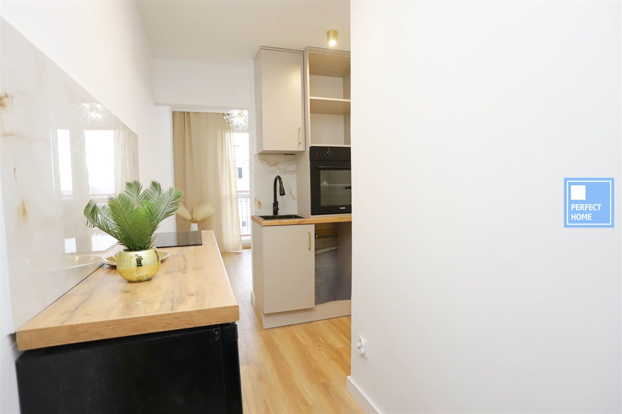 Mieszkanie o powierzchni użytkowej 18,44m², składa się z salonu, kuchni połączonej z przedpokojem oraz łazienki z wc, położone na 10. piętrze budynku, wykończone „pod klucz”, gotowe do wprowadzenia lub natychmiastowego wynajmu. Lokal stanowi idealną propozycję zarówno na pierwsze mieszkanie, jak i inwestycyjnie (np. pod najem krótkoterminowy typu booking). Został urządzony w wysokim standardzie PREMIUM, a każdy element wyposażenia jest w 100% nowy i nigdy nieużywany. W mieszkaniu wykonano nowe instalacje elektryczne oraz wodno-kanalizacyjne. Ogrzewanie miejskie zapewnia komfort użytkowania i niską obsługowość.