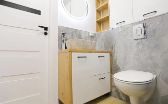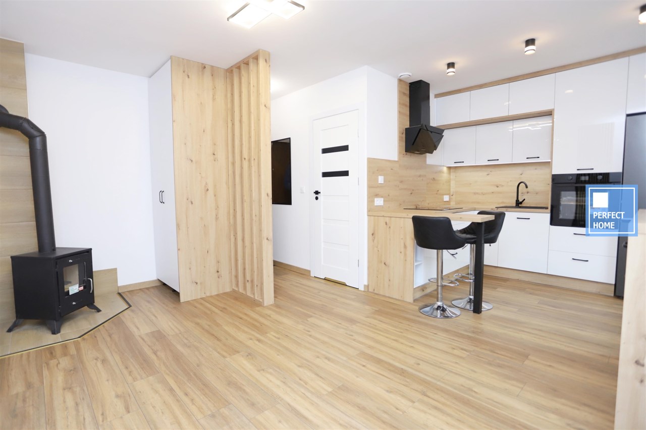 Całość nieruchomości ogrzewana jest nowoczesnym i ekonomicznym systemem ogrzewania elektrycznego z grzejnikami sterowanymi przez Wi-Fi, dodatkowo mieszkanie wyposażone jest w kominek stanowiący alternatywne źródło ogrzewania. Mieszkanie jest jasne i ustawne, wykończone w nowoczesnym, minimalistycznym stylu, łączącym biel z ciepłymi, drewnianymi dekorami. Lokal sprzedawany jest w pełni umeblowany i wyposażony, gotowy do zamieszkania bez dodatkowych nakładów finansowych.