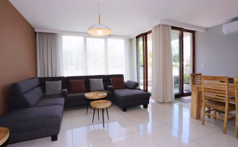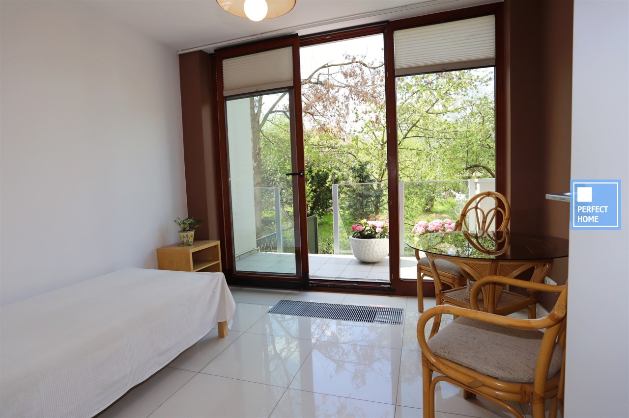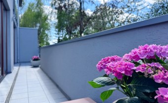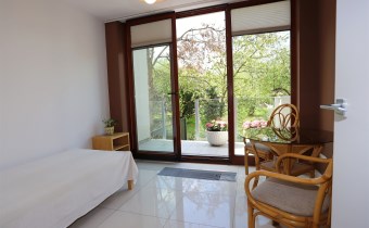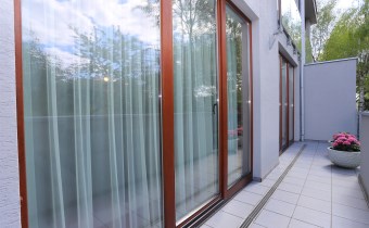 Do mieszkania przynależy również ogród, który stanowi naturalne przedłużenie części dziennej. Przestrzeń ta daje możliwość własnej aranżacji i została oddzielona od sąsiednich części, co sprzyja zachowaniu prywatności.