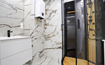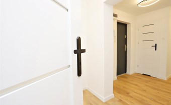 Mieszkanie o powierzchni użytkowej 57,40 m², w skład którego wchodzi przestronny salon z otwartą kuchnią, dwie ustawne sypialnie, osobna łazienka, oddzielna toaleta oraz przedpokój. Dodatkowo do mieszkania przynależy komórka lokatorska. Lokal znajduje się na drugim piętrze w dziesięciopiętrowym budynku wyposażonym w dwie nowe windy. Mieszkanie jest bardzo ustawne i posiada duży potencjał aranżacyjny — w kuchni przygotowano instalacje pod montaż wyspy kuchennej. Całość przeszła generalny remont.