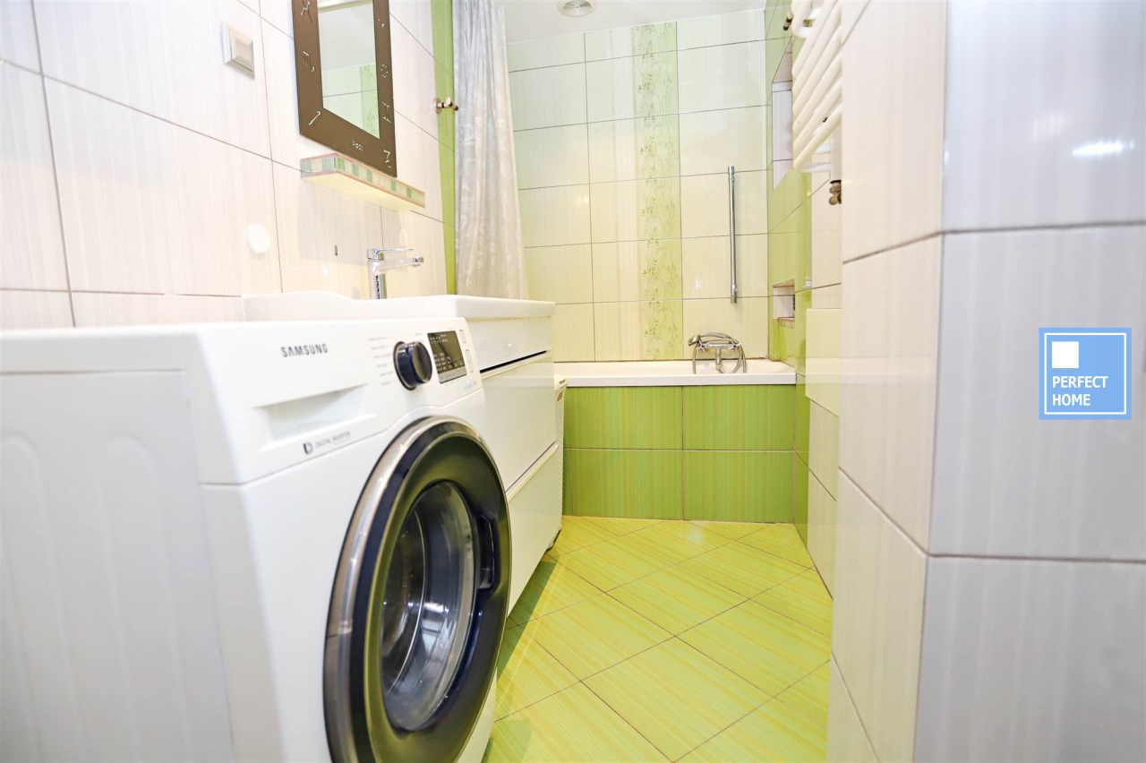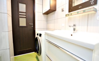 Wyposażenie łazienki lustro, pralka, wanna