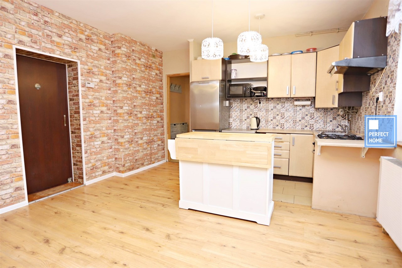 Mieszkanie o powierzchni użytkowej 77,39 m², w skład którego wchodzi ustawny salon, dwie przestronne, bardzo słoneczne sypialnie, kuchnia z jadalnią, łazienka oraz osobna toaleta. Lokal powstał z połączenia dwóch mieszkań i znajduje się na parterze kameralnej, wolnostojącej kamienicy liczącej zaledwie 5 lokali. Do mieszkania przynależą trzy piwnice. Całość ogrzewana jest piecem gazowym dwufunkcyjnym. Nieruchomość wymaga remontu, co daje przyszłemu właścicielowi pełną swobodę aranżacyjną i możliwość dostosowania wnętrza do własnych potrzeb.