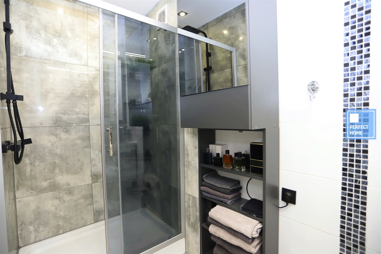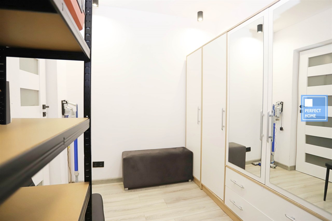 Eksperci Perfect Home oceniają nieruchomość jako gotową do wprowadzenia. Instalacje nowe, okna w standardzie PCV. Uwagę zwraca liczna zabudowa meblarska, budowana pod wymiar, która doskonale zapewnia miejsce na przechowywanie.