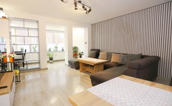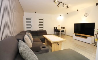 Oferowane mieszkanie znajduje się pierwszym piętrze i składa się z dużego i przestronnego salonu, który jest niemal połączony z loggią zaadaptowaną obecnie na gabinet, przytulnej sypialni, garderoby, kuchni wraz z częścią jadalnianą, przedpokoju, łazienki oraz oddzielnej toalety. Dodatkowo do mieszkania przynależą dwie piwnice, znajdujące się w budynku. Całość mieszkania ogrzewana jest nowoczesnym, sterowanym smartfonem systemem ogrzewania gazowego, z bezpiecznym kotłem posiadającą zamkniętą komorę spalania. Bardzo dużym atutem jest fakt, iż niemal wszystkie umeblowanie i wyposażenie widoczne na zdjęciach, pozostaje w nieruchomości w ramach oferowanej ceny.