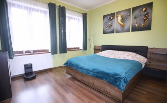 W skład tej interesującej nieruchomości o powierzchni 87,1 m² wchodzi słoneczny, ustawny salon, dwie niezależne sypialnie (z możliwością podziału jednej z nich na dwa odrębne pomieszczenia), jasna kuchnia ze spiżarką, łazienka z toaletą oraz przedpokój zapewniający dostęp do każdego z pokoi. Mieszkanie ogrzewane jest komfortowym ogrzewaniem gazowym, a dodatkowy klimat i realne oszczędności zapewnia kominek w salonie. Do lokalu przynależą dwie piwnice o powierzchni 2 m² i 6 m². Obecni właściciele korzystają również z pobliskiego ogrodu, którego użytkowanie można przejąć. W sąsiedztwie znajduje się garaż — opcjonalnie dostępny do zakupu za 55 000 zł.
