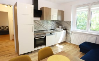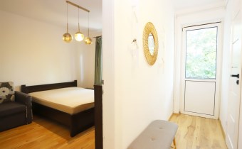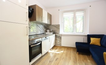 Na powierzchnię użytkową 32,67 m2 składa się jasny salon z aneksem kuchennym oraz stołem jadalnianym, przytulna sypialnia z podwójnym łóżkiem oraz miejscem do przechowywania, łazienka wraz z toaletą, a także przedpokój z wyjściem na balkon. Mieszkanie pomimo niewielkiego metrażu jest funkcjonalnie zaaranżowane i wyposażone. Całość ogrzewana komfortowym ogrzewaniem gazowym (piec dwufunkcyjny). Pod budynkiem znajdują się miejsca parkingowe przeznaczone wyłącznie dla mieszkańców.