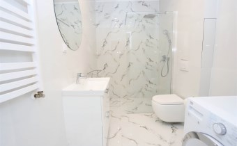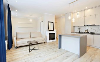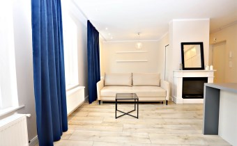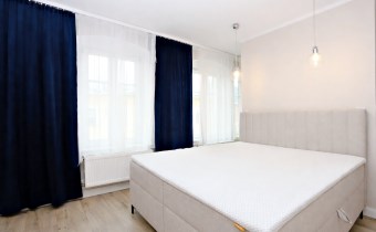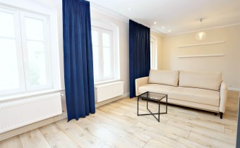 Nieruchomość usytuowana jest na IV piętrze w kamienicy. Mieszkanie składa się z ustawnej oraz przestronnej części dziennej tj. salonu połączonego z aneksem kuchennym wraz z jadalnią, komfortowej sypialni wraz z garderobą, łazienki z toaletą oraz przedpokoju. Mieszkanie zostało w pełni wyposażone i urządzone w stylowy sposób, dzięki czemu jest gotowe do zamieszkania od zaraz. Na wyposażeniu znajdziemy: meble kuchenne na wymiar wraz ze sprzętem ( lodówka, zmywarka, piekarnik, płyta indukcyjna), sofa (inna niż na zdjęciu), stół jadalniany wraz z krzesłami, stolik kawowy, łóżko sypialniane (inne niż na zdjęciu), pralka, duża lustrzana szafa. Całość nieruchomości ogrzewana jest ekonomicznym ogrzewaniem gazowym.