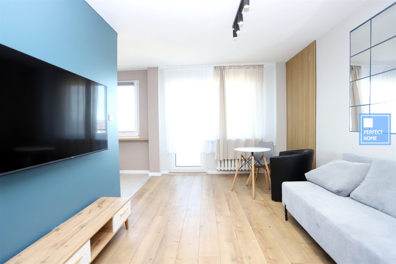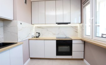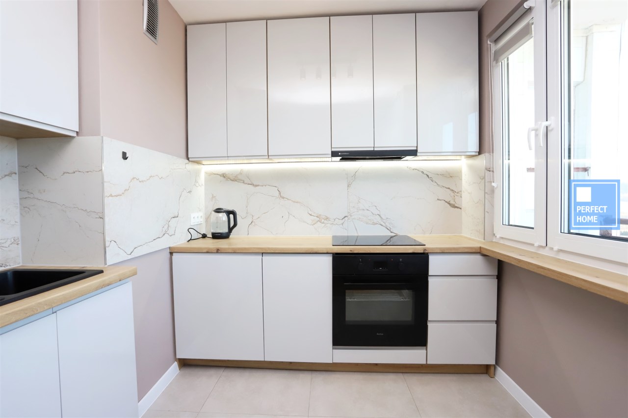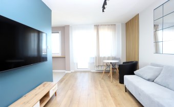 Mieszkanie usytuowane jest na ósmym piętrze w dziesięciopiętrowym bloku. Nieruchomość składa się ze słonecznego i przestronnego salonu z aneksem kuchennym oraz bezpośrednim wyjściem na spory balkon, urokliwej sypialni, łazienki wraz z toaletą oraz przedpokoju. Mieszkanie przeszło generalny remont z użyciem wysokiej jakości materiałów wykończeniowych oraz zostało stylowo urządzone. Salon wyposażony jest w rozkładaną dwuosobową sofę, stół z krzesłami oraz szafkę RTV wraz z telewizorem. W sypialni znajdziemy duże łóżko sypialniane oraz komodę. W kuchni natomiast znajdziemy meble kuchenne wraz ze sprzętami tj lodówka, płyta indukcyjna, piekarnik, zmywarka. W łazience dodatkowo znajduję się pralka, a w przedpokoju jest pojemna szafa z lustrem. Mieszkanie gotowe do natychmiastowego zamieszkania, dodatkowo oferuje piękny widok na Wałbrzyskie Góry.